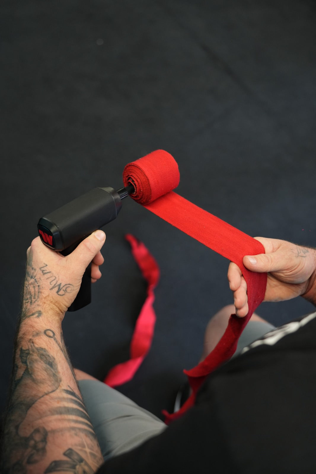Say goodbye to tangled, time-consuming hand wraps. Engineered for athletes who train smart, our innovative handheld device automatically wraps your hand wraps in seconds, saving you time and hassle before and after every session.